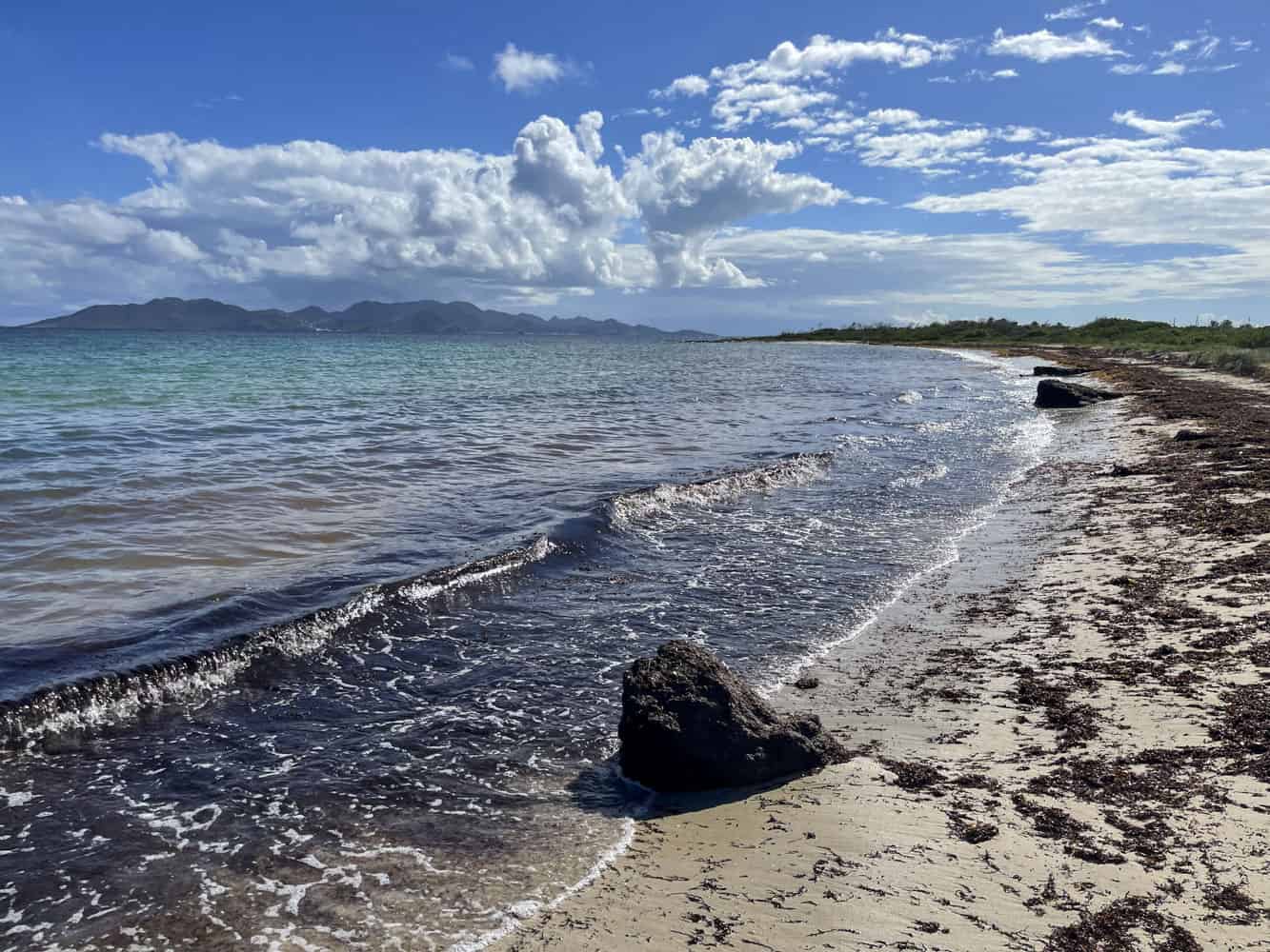 Although it is still frequented by some locals and has a small dock for fishermen, the beach has been heavily affected by Sargassum and is not recommended for swimming. However, it remains a great spot for exploring.